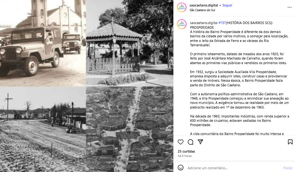 Veículo: Online -> Instagram -> Instagram São Caetano Digital