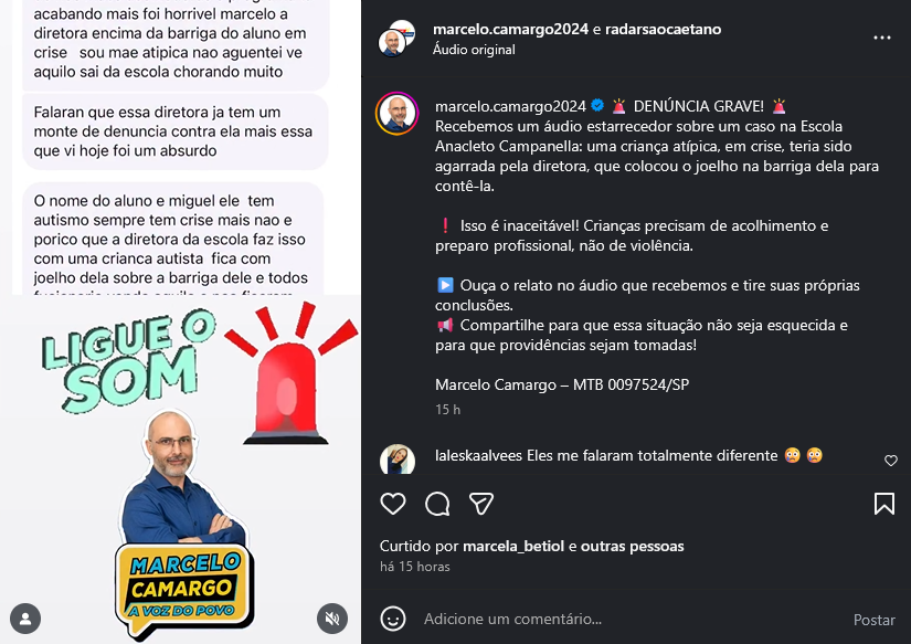Recebemos um áudio estarrecedor sobre um caso na Escola Anacleto Campanella