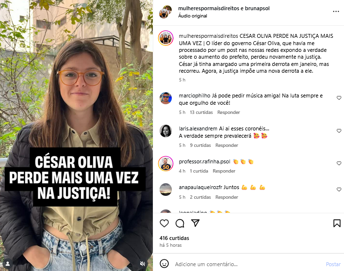 Veículo: Online -> Instagram -> Instagram Mulheres por Mais Direito
