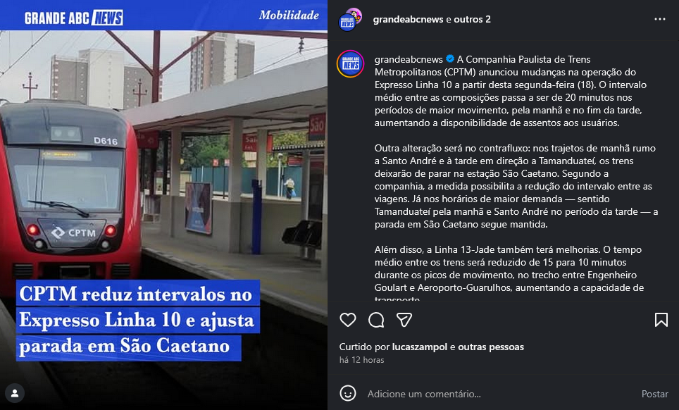 Veículo: Online -> Instagram -> Instagram Grande ABC News