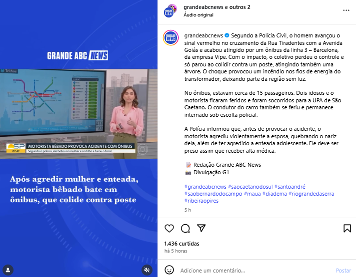 Veículo: Online -> Instagram -> Instagram Grande ABC News
