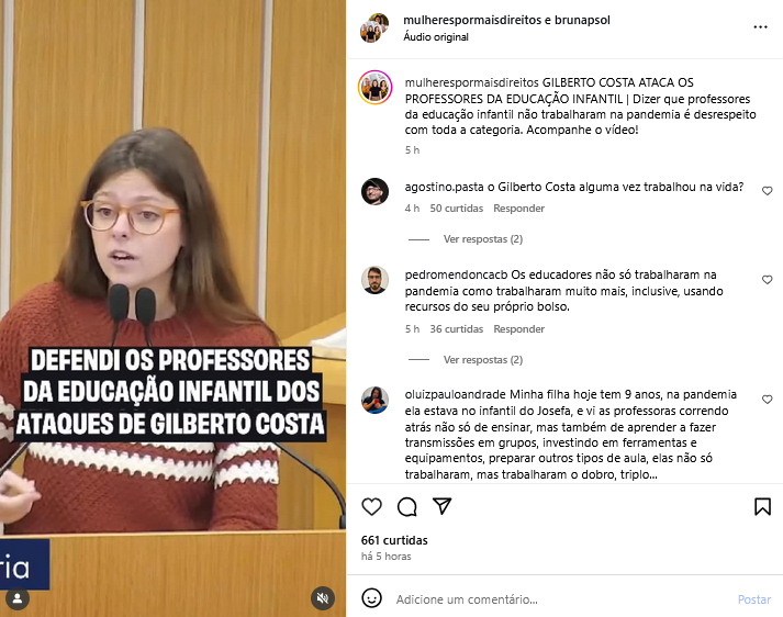 Gilberto Costa ataca os professores da educação infantil