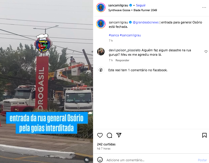 Veículo: Online -> Instagram -> Instagram Sanca Mil Grau