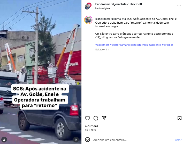 SCS: Após acidente na Av. Goiás, Enel e Operadora trabalham para “retorno” da normalidade com internet e energia