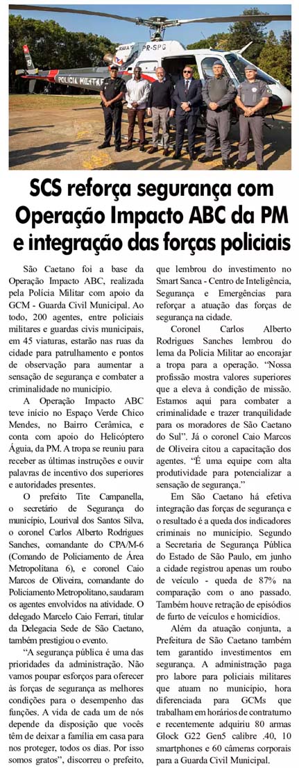 SCS reforça segurança com Operação Impacto ABC da PM e integração das forças policiais
