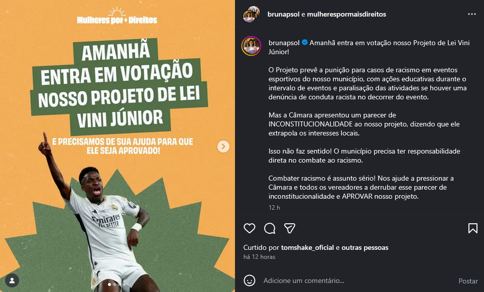 Amanhã entra em votação nosso Projeto de Lei Vini Júnior