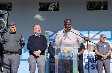 “A Polícia Militar, Polícia Civil e a Guarda Civil para combater o crime na nossa cidade com esse policiamento de prevenção que será feito, inclusive com a presença do nosso helicóptero Águia da Polícia Militar”.