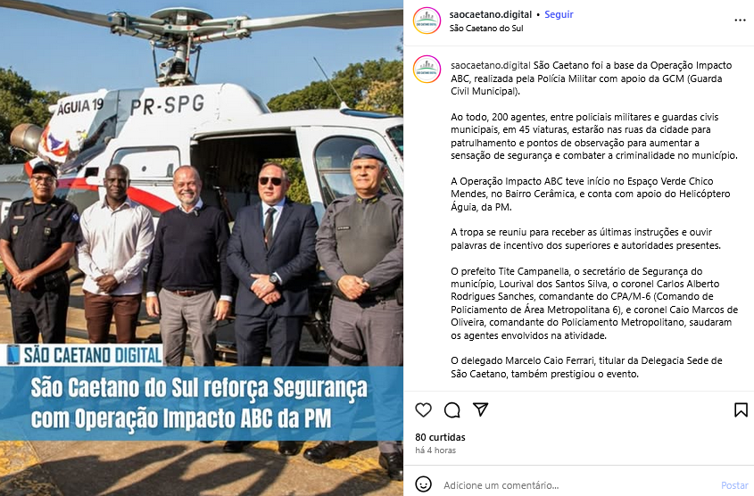 Veículo: Online -> Instagram -> Instagram São Caetano Digital