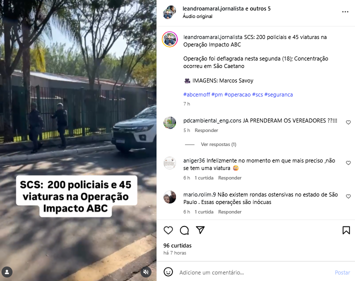 SCS: 200 policiais e 45 viaturas na Operação Impacto ABC