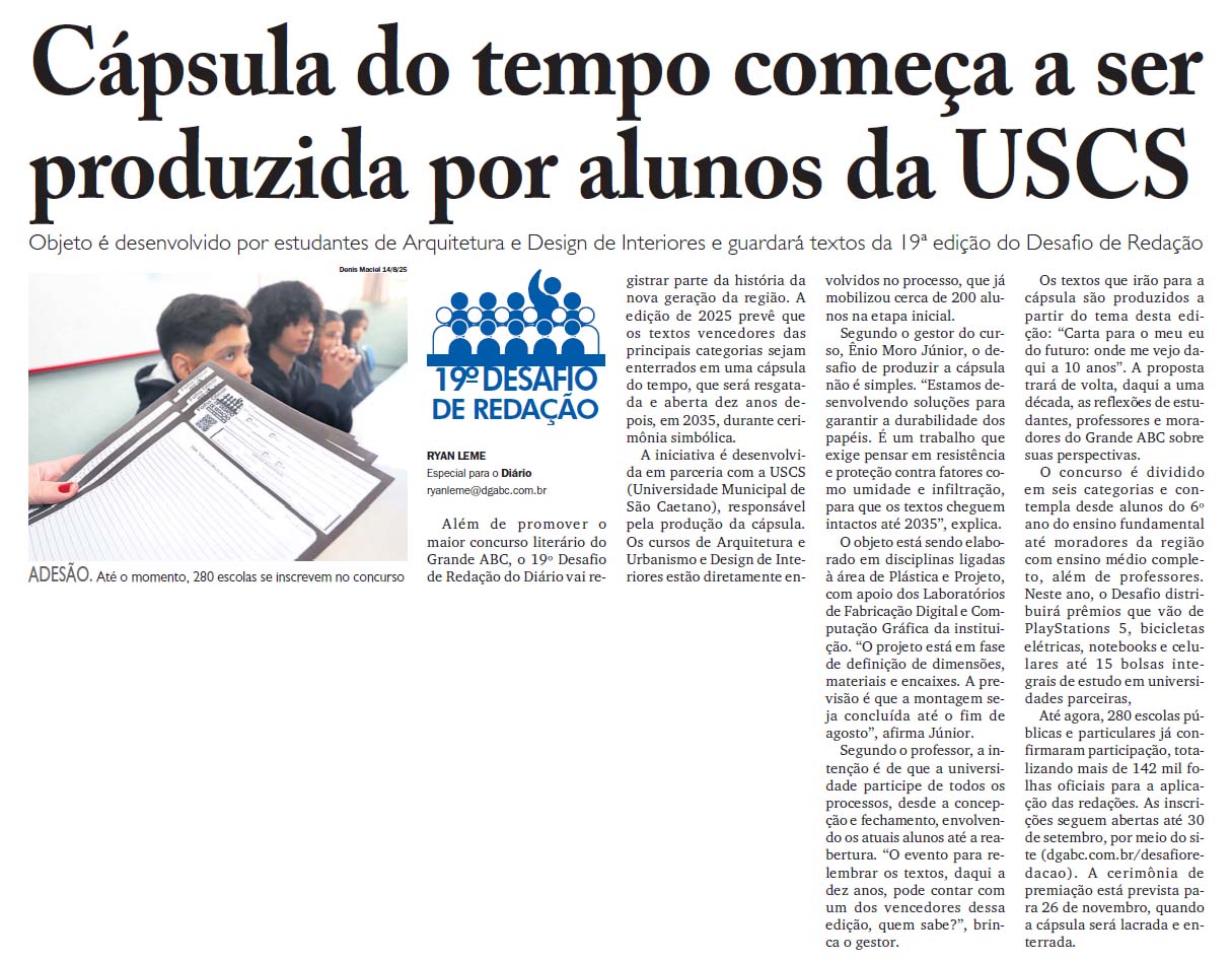 Cápsula do tempo começa a ser produzida por alunos da USCS
