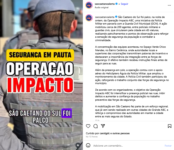 Veículo: Online -> Instagram -> Instagram São Caetano Alerta