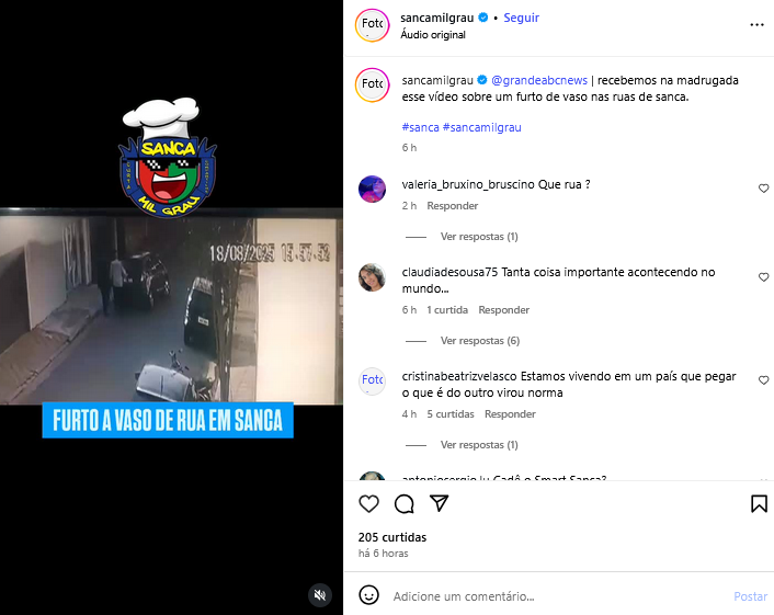Veículo: Online -> Instagram -> Instagram Sanca Mil Grau