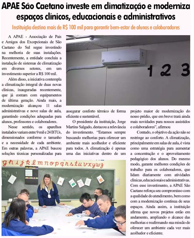 APAE de São Caetano investe em climatização e moderniza espaços clínicos, educacionais e administrativos