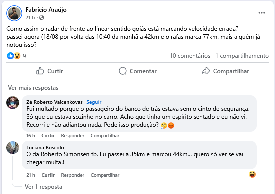 Morador relata radar com marcação errada em frente ao Parque Linear
