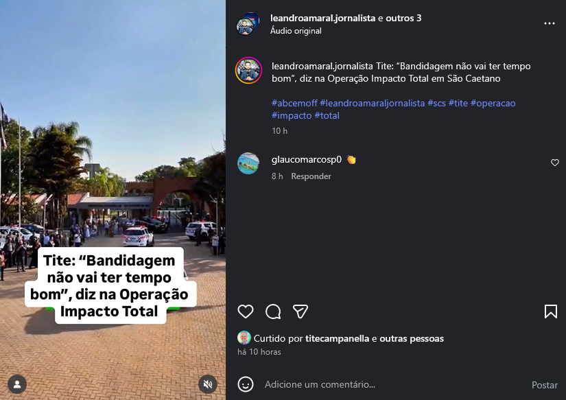 Tite: “Bandidagem não vai ter tempo bom”, diz na Operação Impacto Total
