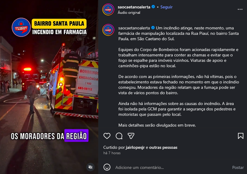 Veículo: Online -> Instagram -> Instagram São Caetano Alerta