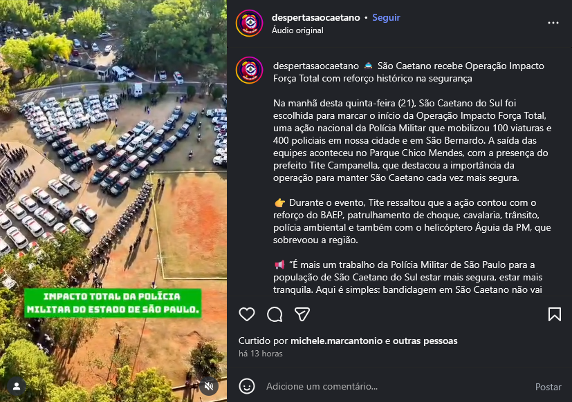 Veículo: Online -> Instagram -> Instagram Desperta São Caetano