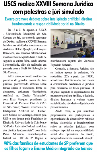 USCS realiza XXVIII Semana Jurídica com plaestras e júri simulado