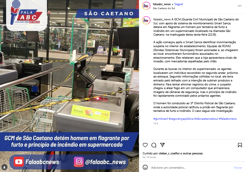 GCM de São Caetano detém homem em flagrante por furto e princípio de incêndio em supermercado
