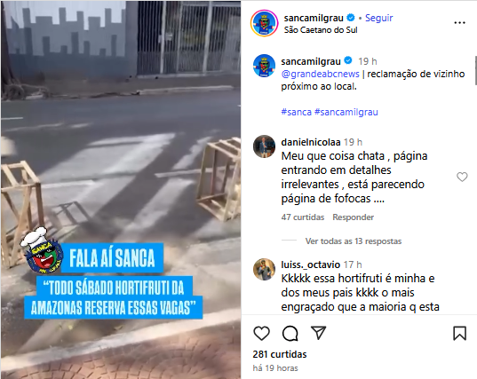 Veículo: Online -> Instagram -> Instagram Sanca Mil Grau