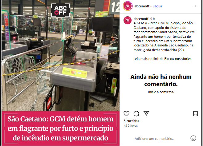 GCM de São Caetano detém homem em flagrante por furto e princípio de incêndio em supermercado