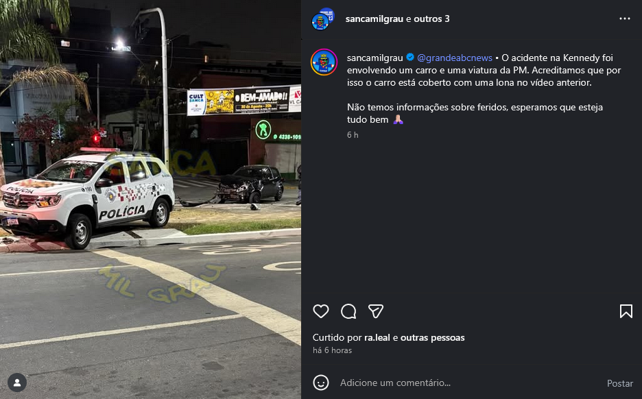 O acidente na Kennedy foi envolvendo um carro e uma viatura da PM