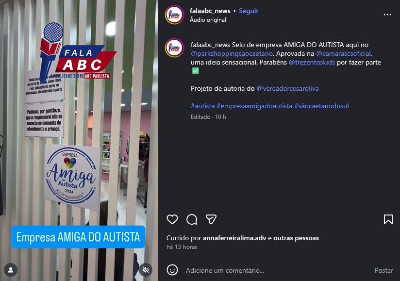Selo de empresa Amiga do Autista aqui no Park Shopping São Caetano