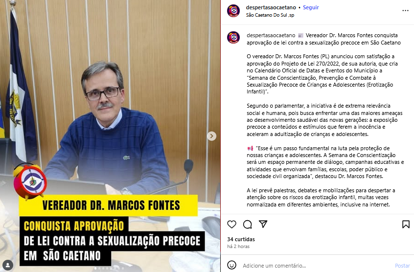 Vereador Dr. Marcos Fontes conquista aprovação de lei contra a sexualização precoce em São Caetano