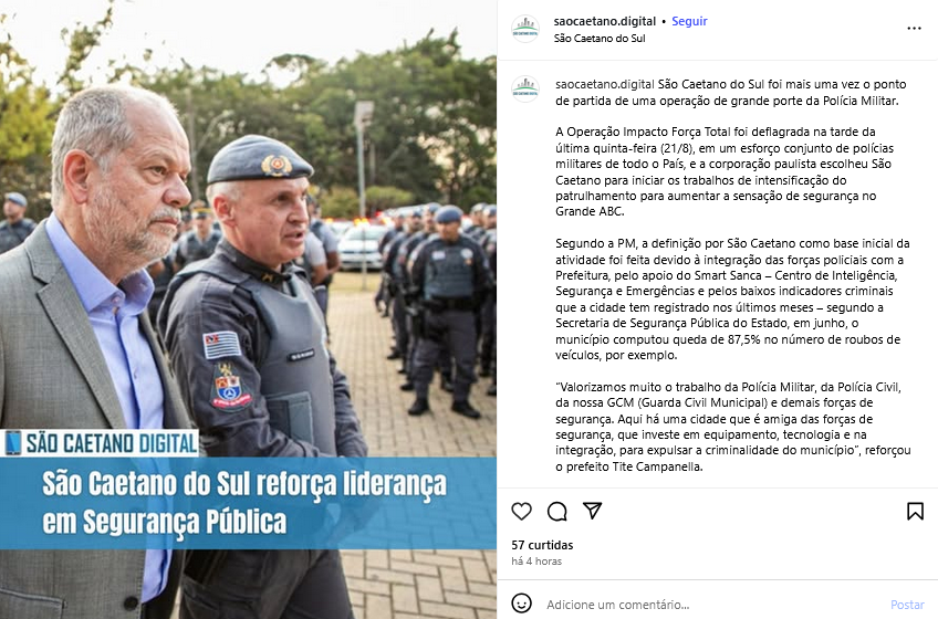 Veículo: Online -> Instagram -> Instagram São Caetano Digital