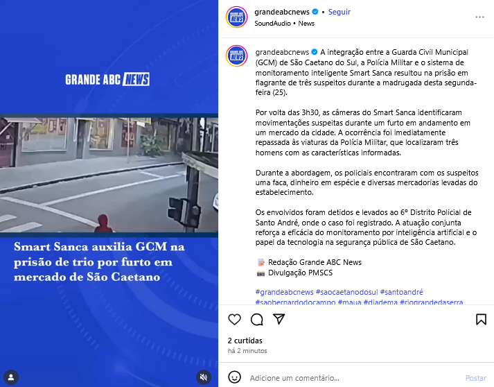 Veículo: Online -> Instagram -> Instagram Grande ABC News