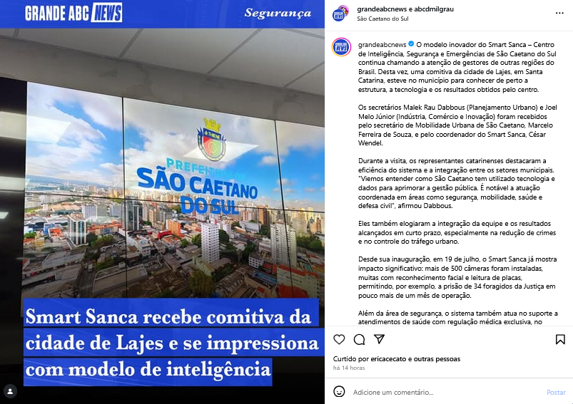 Smart Sanca recebe comitiva da cidade de Lajes e se impressiona com modelo de inteligência