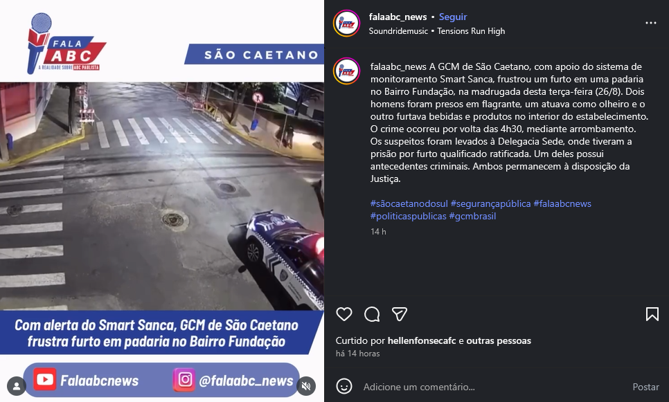 Com alerta do Smart Sanca, GCM de São Caetano frustra furto em padaria no Bairro Fundação