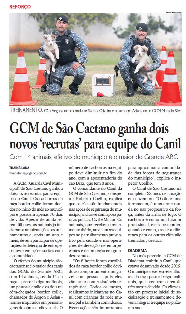 GCM de São Caetano ganha dois novos ‘recrutas’ para equipe do Canil
