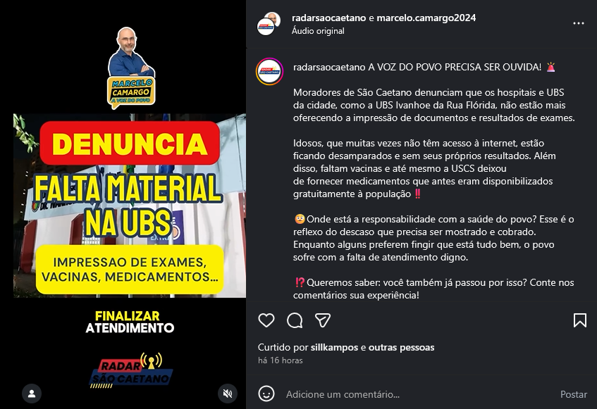 Veículo: Online -> Instagram -> Instagram Marcelo Camargo