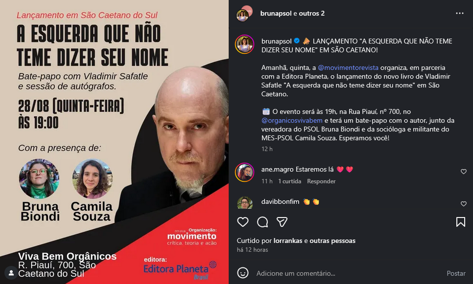 Lançamento "A esquerda que não teme dizer seu nome" em São Caetano