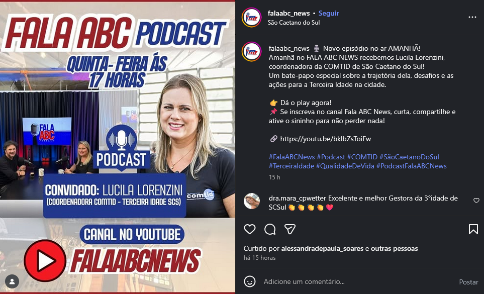 Amanhã no Fala ABC News recebemos Lucila Lorenzini, coordenadora da COMTID de São Caetano do Sul