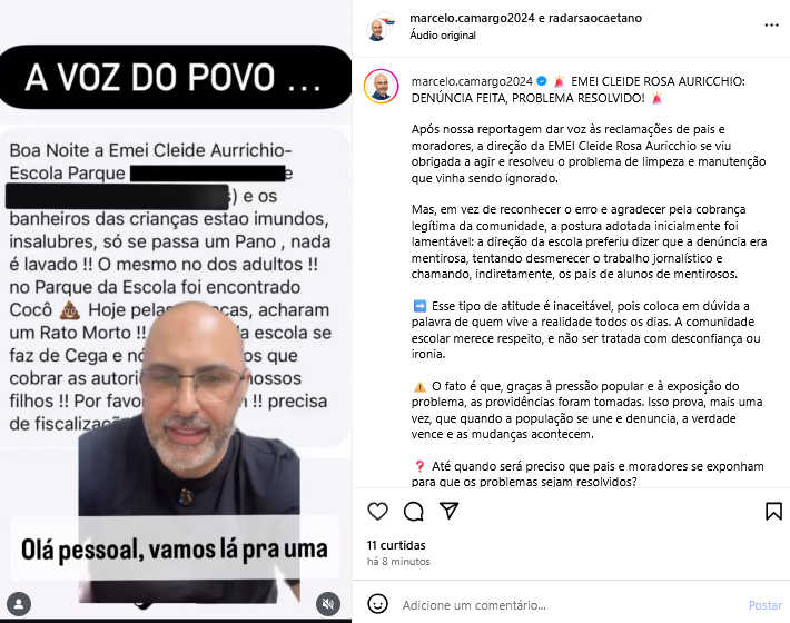 EMEI Cleide Rosa Auricchio: denúncia feita, problema resolvido