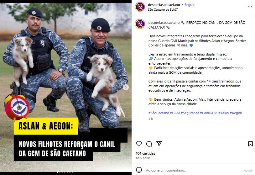 Aslan e Aegon: novos filhotes reforçam o Canil da GCM de São Caetano