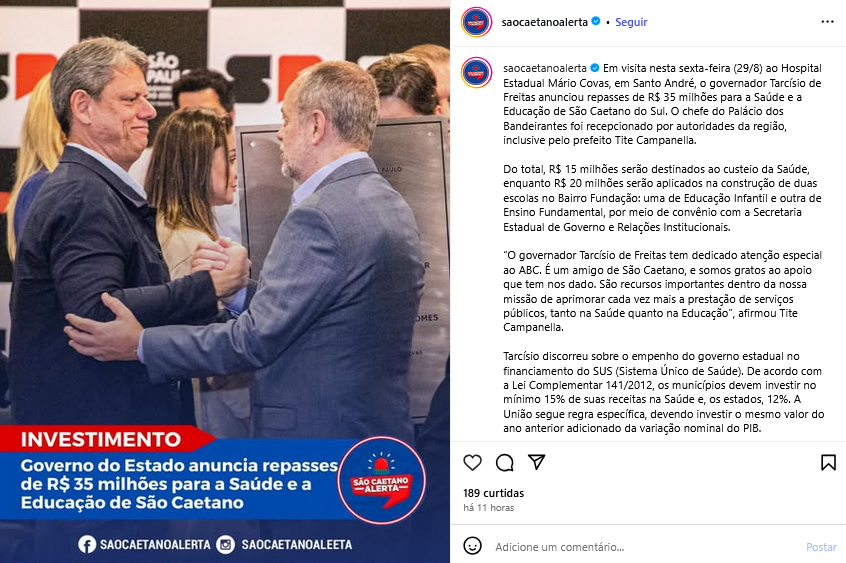 Veículo: Online -> Instagram -> Instagram São Caetano Alerta