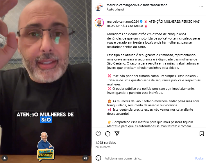 Atenção mulheres: perigo nas ruas de São Caetano!