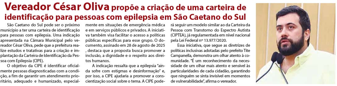 Vereador César Oliva propõe a criação de uma carteira de identificação para pessoas com epilepsia em São Caetano do Sul