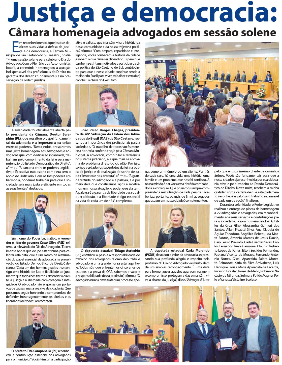 Justiça e democracia: Câmara homenageia advogados em sessão solene