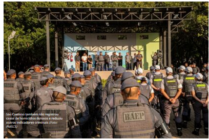 Além de zerar o número de roubo de veículos, São Caetano também não registrou casos de homicídios dolosos e reduziu outros indicadores criminais, como furto de veículos (queda de 41,7%), roubos – outros (retração de 43,14%) e lesão corporal dolosa (recuo de 37,5%).