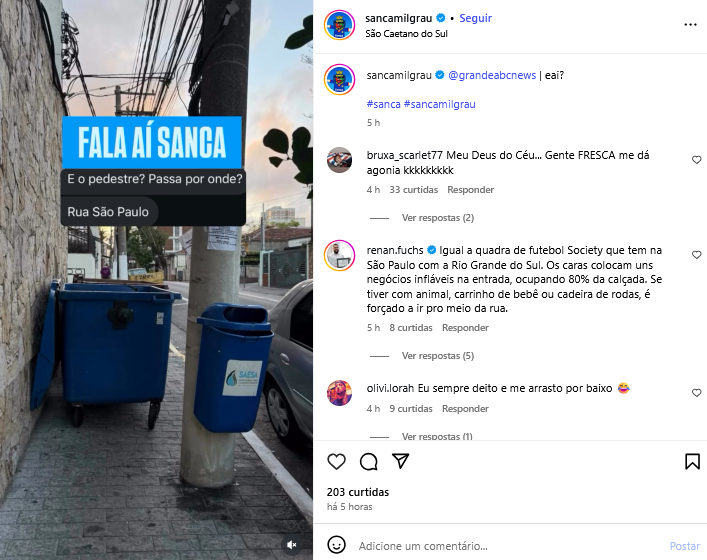 Veículo: Online -> Instagram -> Instagram Sanca Mil Grau