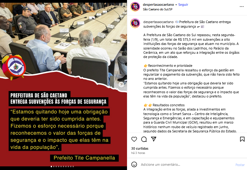 Veículo: Online -> Instagram -> Instagram Desperta São Caetano