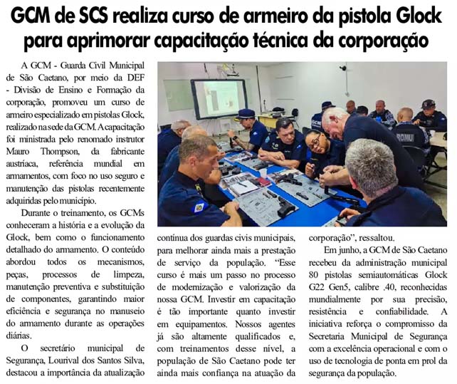 GCM de SCS realiza curso de armeiro da pistola Glock para aprimorar capacitação técnica da corporação