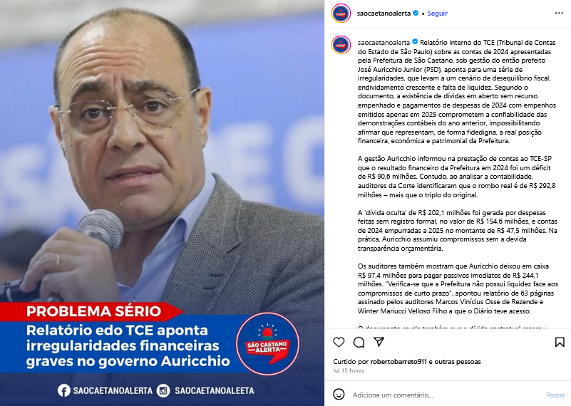 Veículo: Online -> Instagram -> Instagram São Caetano Alerta