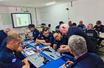 Durante o treinamento, os GCMs conheceram a história e a evolução da Glock, bem como o funcionamento detalhado do armamento. O conteúdo abordou todos os mecanismos, peças, processos de limpeza, manutenção preventiva e substituição de componentes, garantindo maior eficiência e segurança no manuseio do armamento durante as operações diárias.