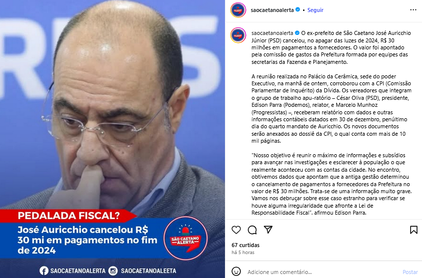 José Auricchio cancelou R$ 30 mi em pagamentos no fim de 2024