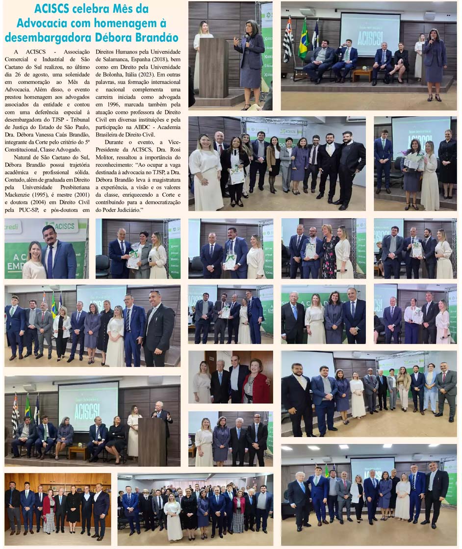 ACISCS celebra Mês da Advocacia com homenagem à desembargadora Débora Brandão